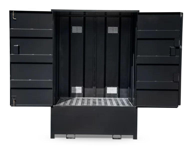 The DBIBC1 features integrated forklift pockets for easy transportation and manoeuvrability, while its durable design ensures longevity and protection against theft and environmental damage. Its wide double doors make loading easy.