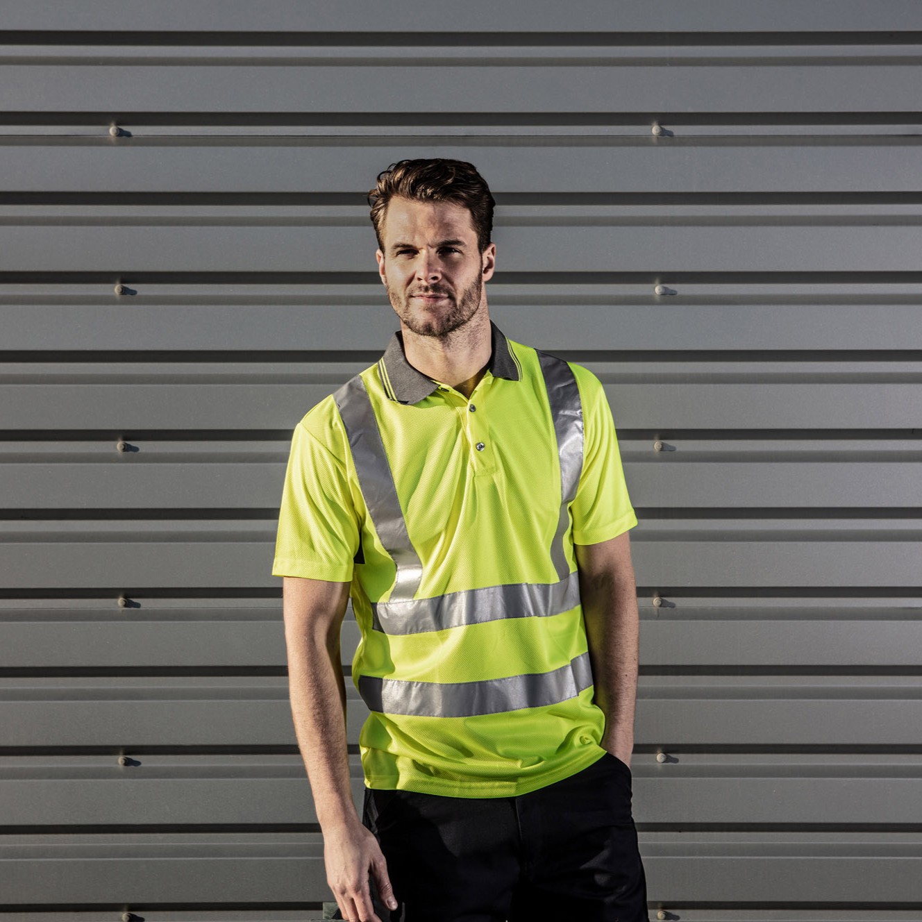 Made using classic Birdseye fabric, the Duncton is a lightweight and comfortable option with a stylish grey ribbed collar with two contrast stripes and split hem design.