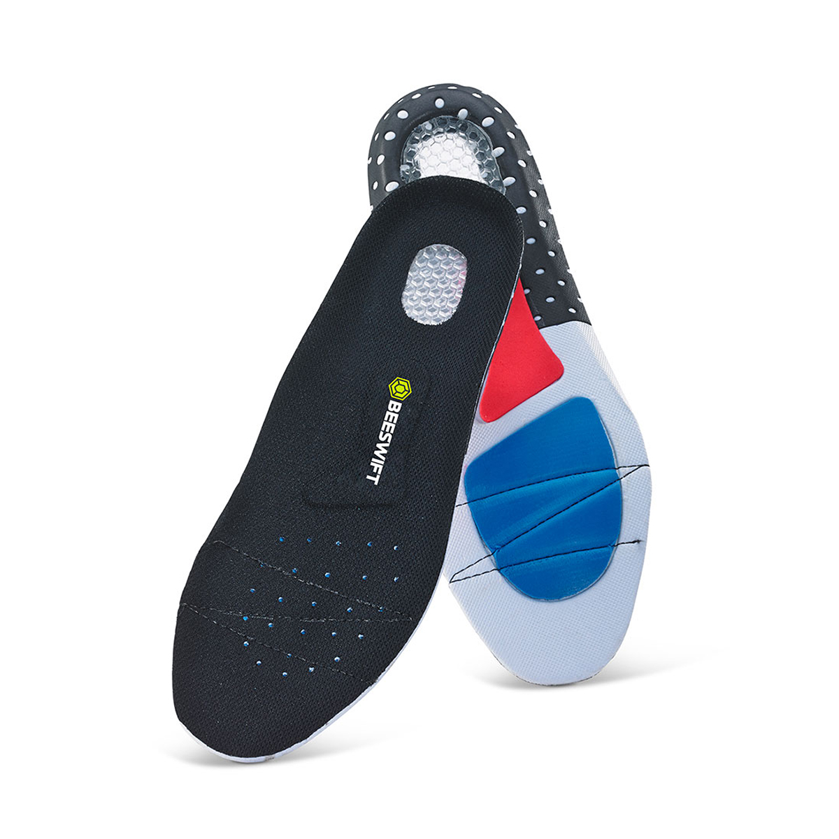 High elastic E.V.A insole footbed with soft latex. Shock absorption honeycomb heel. Excellent comfort. Offers cushioning and support for the feet over extended walking and standing time periods. Protects the foot from impact with the ground and helps to lessen the stress on joints and ligaments in the foot. Helps prevent injury. Friction reducing top fabric. Fits in most shoes with a removable insole.