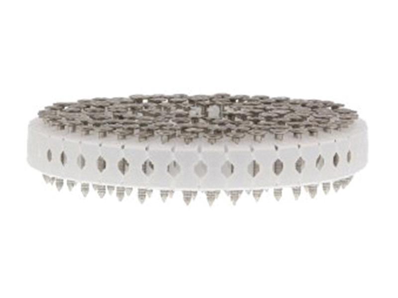 The Paslode 0° Plastic Coil Ring Shank Stainless Steel A2 Nails have a unique full head design that offers optimum performance and provides the best finish for metal roofing applications. They offer the best collation in their class, with no material trapped under the head.
