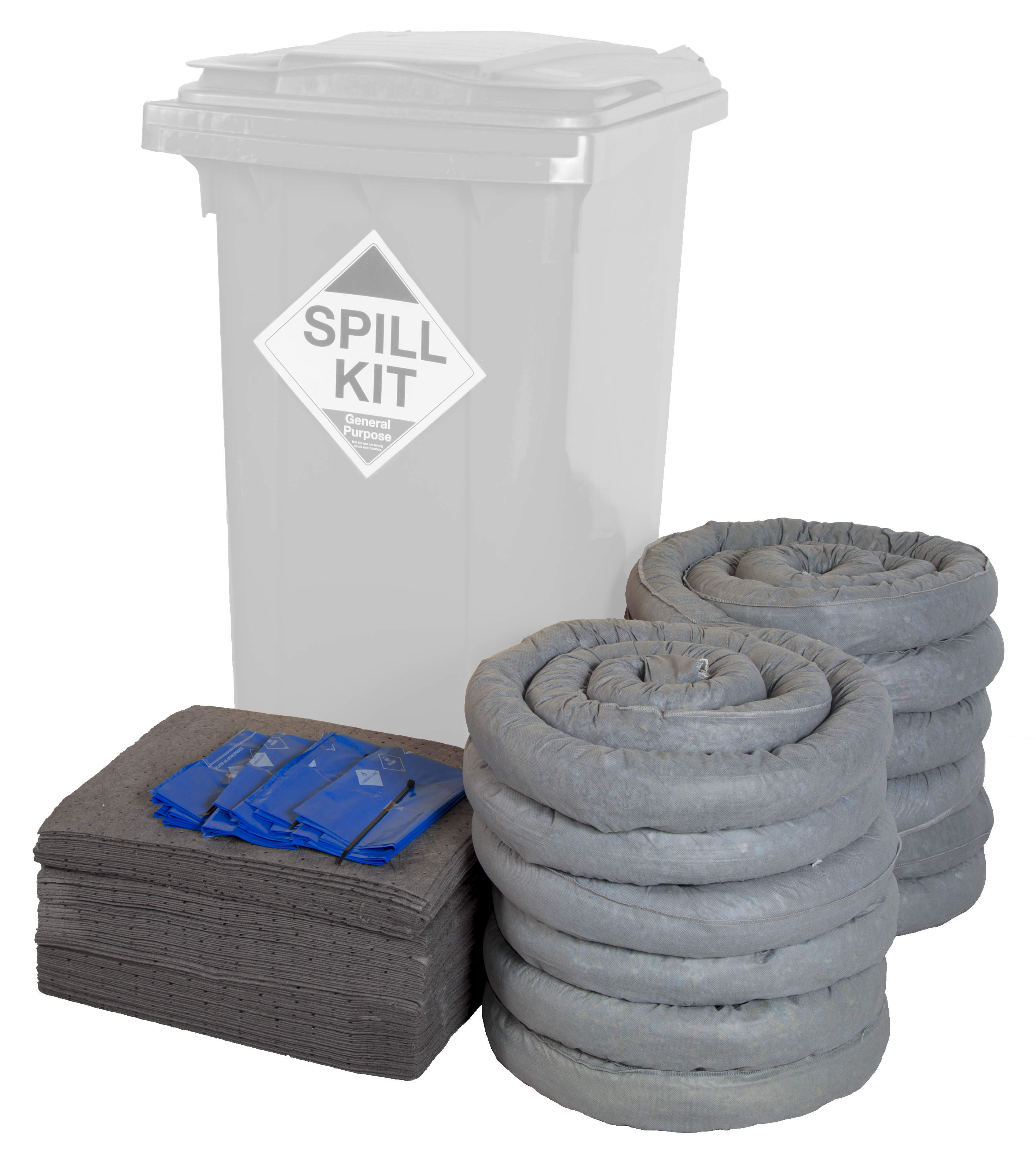 Refill for the OSC-13821, 240 litre Spill Kit in a yellow wheelie bin. For use on leaks and spills in the workplace for quick and efficient clean-up. The kit includes absorbent socks to contain spills and protect drains and absorbent pads to soak up spilled liquids. Disposal bag and zip-tie included. General Purpose • Coolant • Antifreeze • Oil • Water • Weak chemicals • Solvents