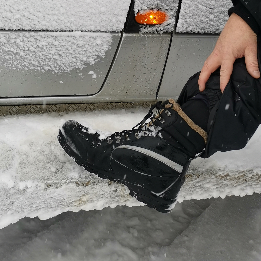 Protective toecap and midsole, Alaska is a cold temperature boot developed with specialist materials that are certified for use in temperatures as low as -40°C, including 3M Thinsulate B600 Ultra, Fursulate Fur Lining and a shock absorbing solid nitrile rubber outsole. Water repellent full grain black leather. Protective fibreglass toecap and composite anti-penetration flexi-midsole. 3M Thinsulate B600 Ultra Fur Lining – Certified to -40°C. Shock absorbing. Nitrile Rubber Outsole. Anti-fatigue Fur EVA Footbed