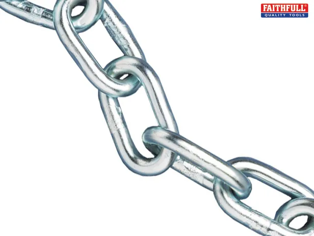These Faithfull welded steel chains are made with the link side welded for extra strength. They have mild steel welded straight links made to form an A style short link chain. The chains are bright zinc plated and ideal for general purpose applications such as securing loads. The item is a non-stock/special order item. Please see our Returns Policy to check product legibility